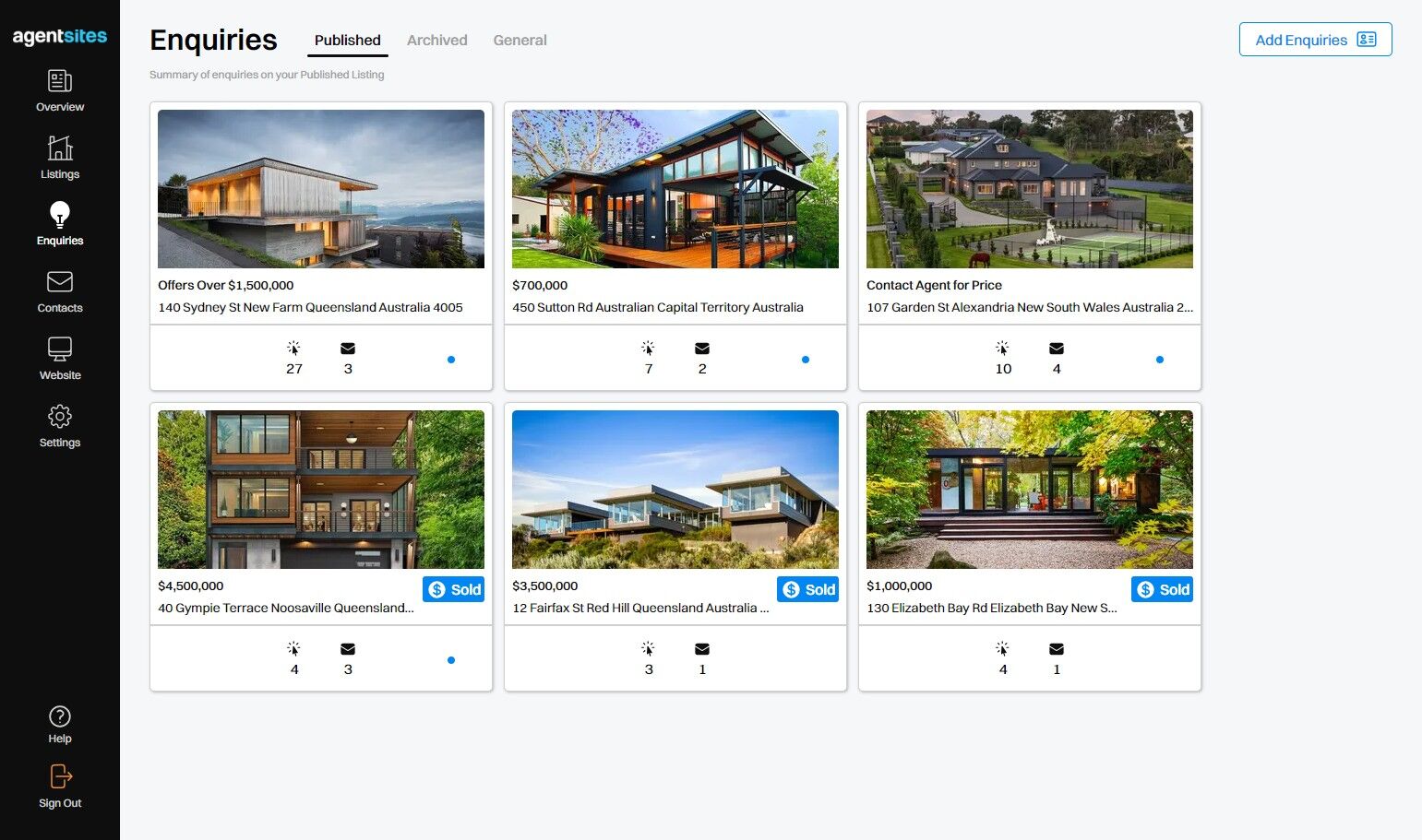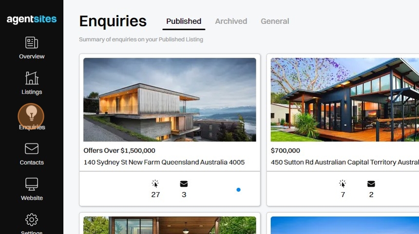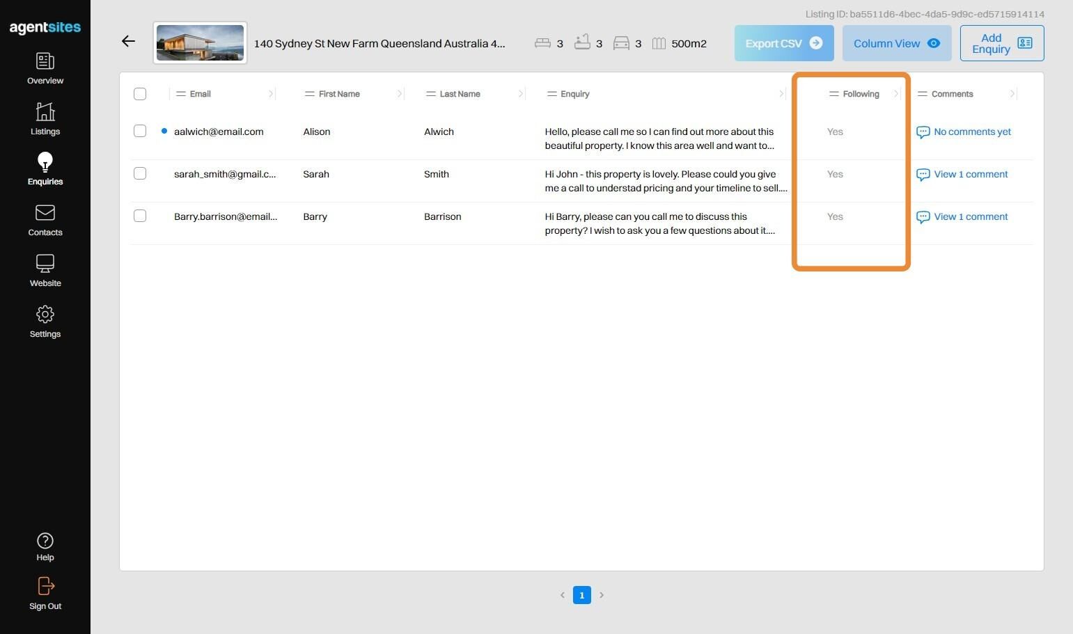 3. Within the Enquiries summary table, review the 'Following' column to see which Contacts have requested to follow this Listing.