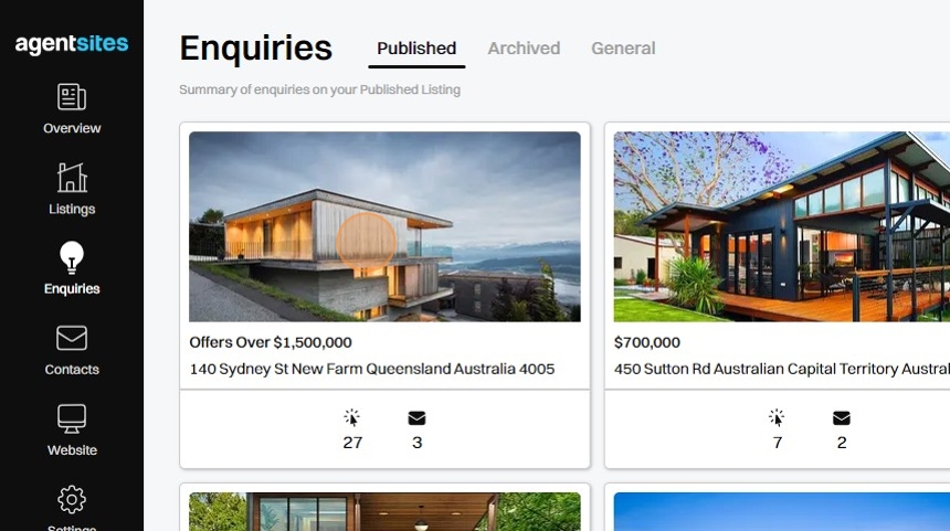 2. Select the Listing tile of the property you wish to manually add an Enquiry (or multiple Enquiries).