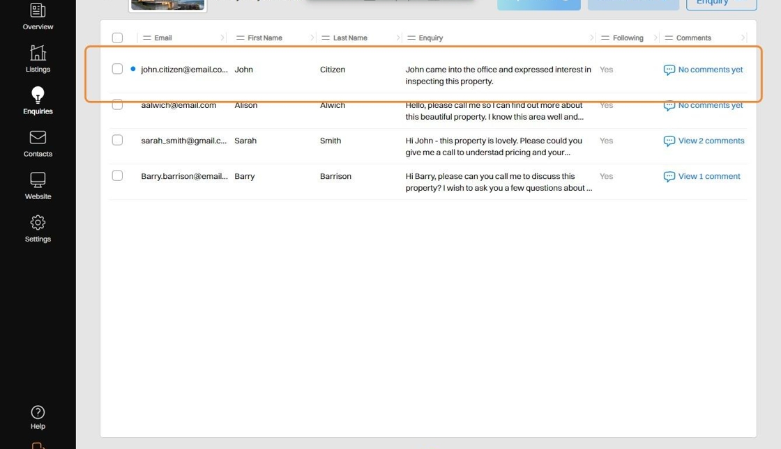 7. Your Enquiry (or multiple Enquiries) will now be added to the selected Listing.