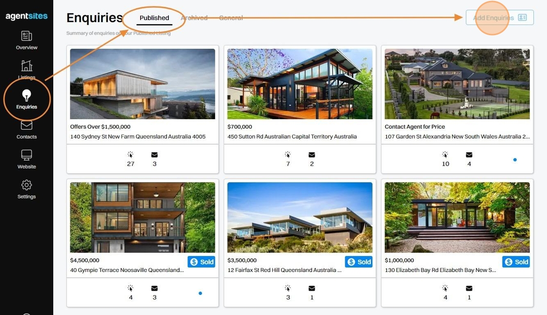 1. Within Enquiries, navigate to either Published or Archived Listings.