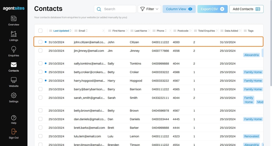 2. Select the Contact which you want to add a comment or to-do note (or multiple comments / to-do notes). This will open up this contact's summary page.