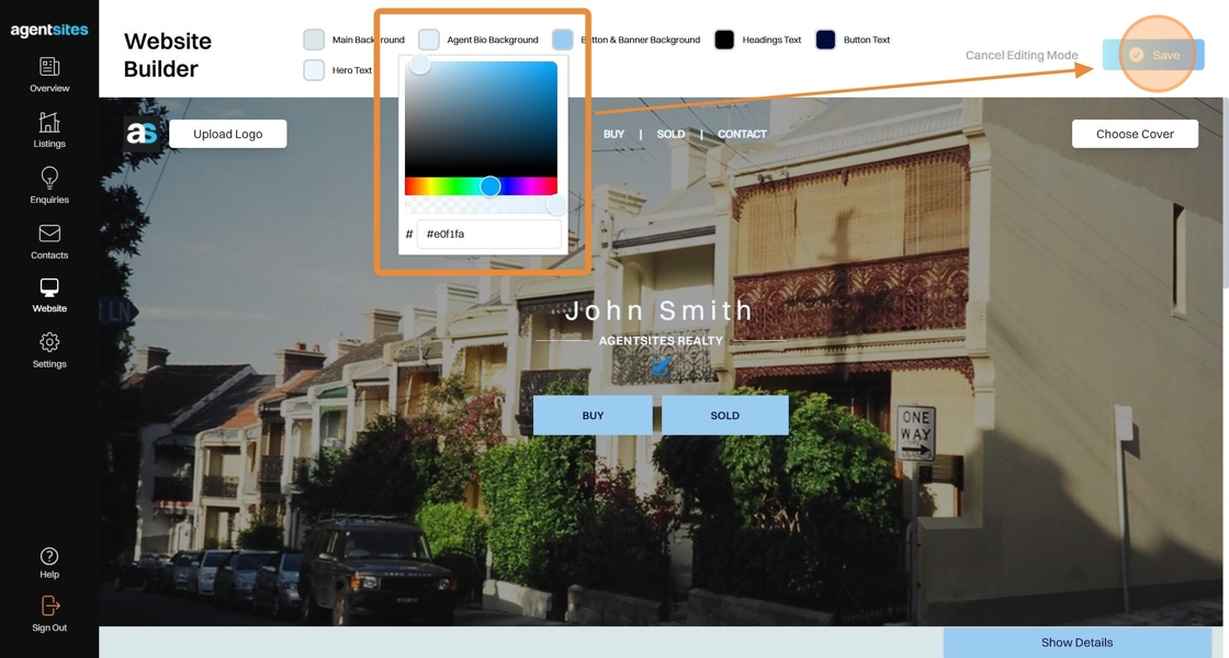 5. Click Save to apply your new background colours as selected in the Background Colour Panel.