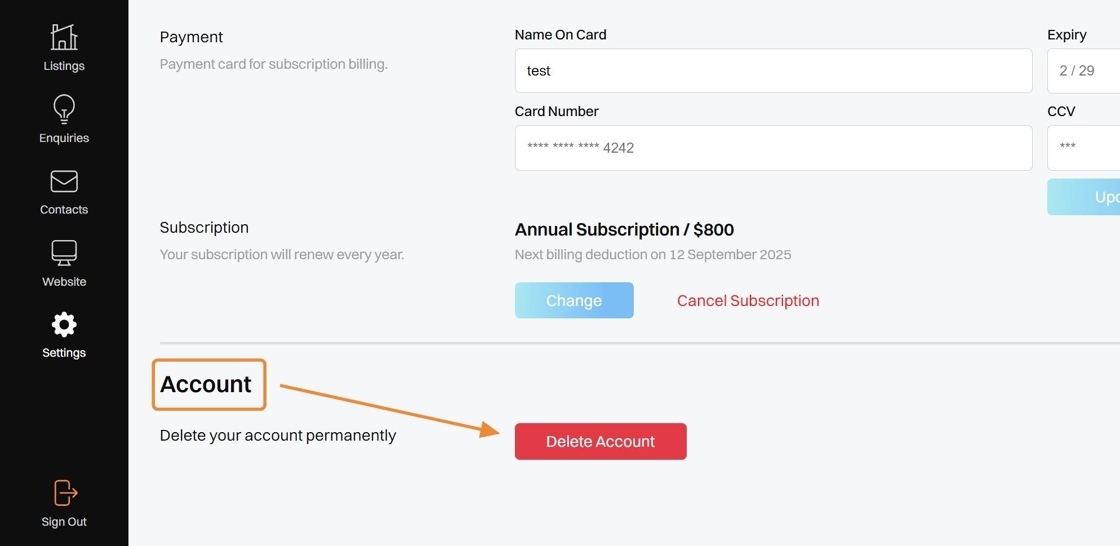 Your Agentsites account will be permanently deleted and you will be signed out of the Agentsites platform.