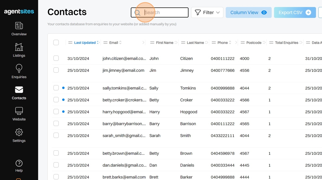 4. You can 'free-text' search key words or partial character combinations (letters or numbers). The search function will search the Email, First Name, Last Name and Phone fields.