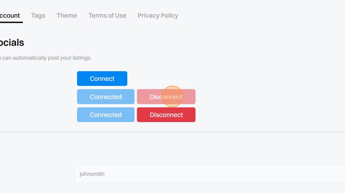 2. Under Socials, click "Disconnect" on the Account you wish to disconnect.