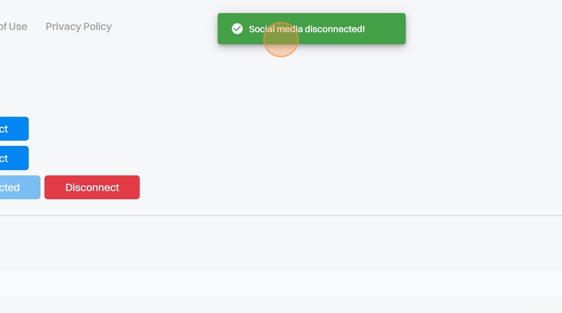 3. You will receive a Social media disconnected! notification once disconnected.