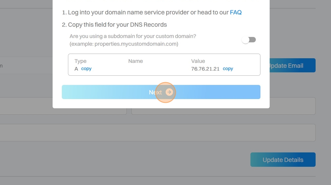 2. Click "Update Domain". A pop up will appear with the Domain Prompts.