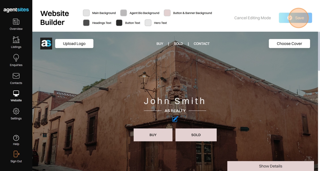 1. Once you have created a new Agentsites account, you will be directed to set up your website.