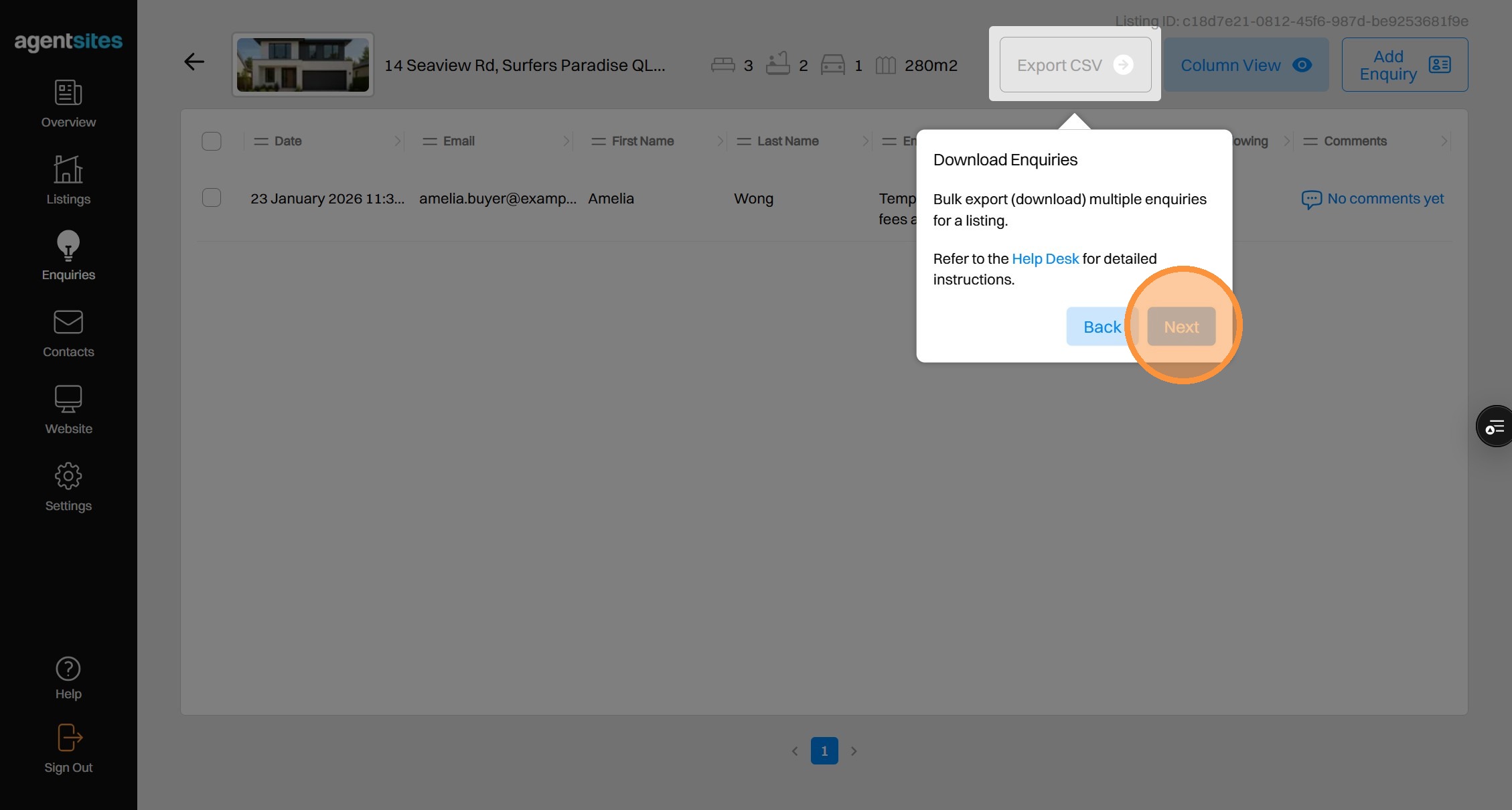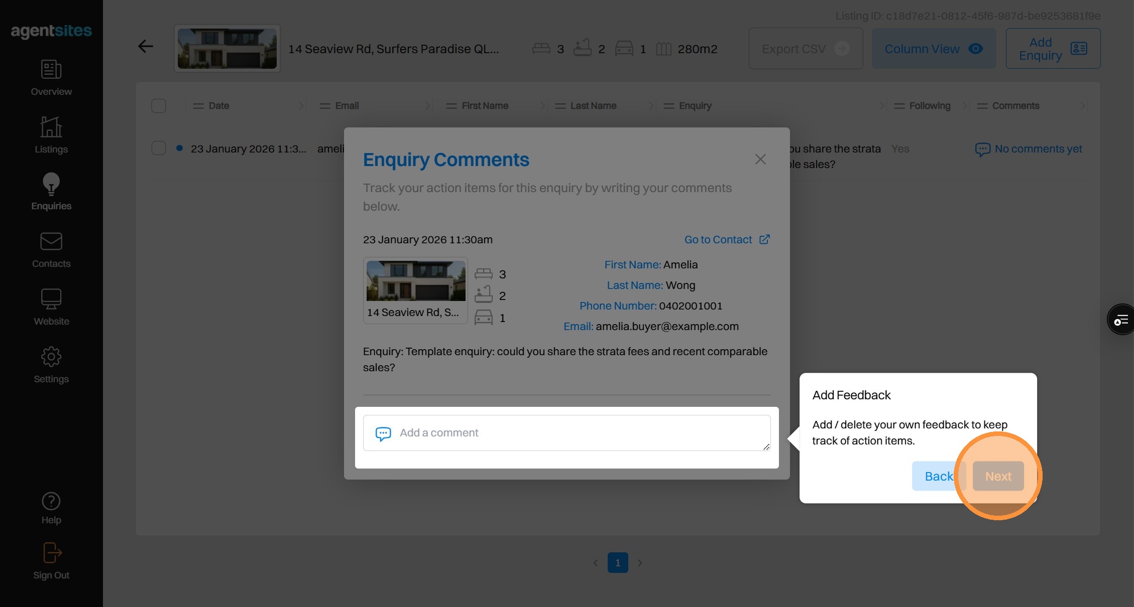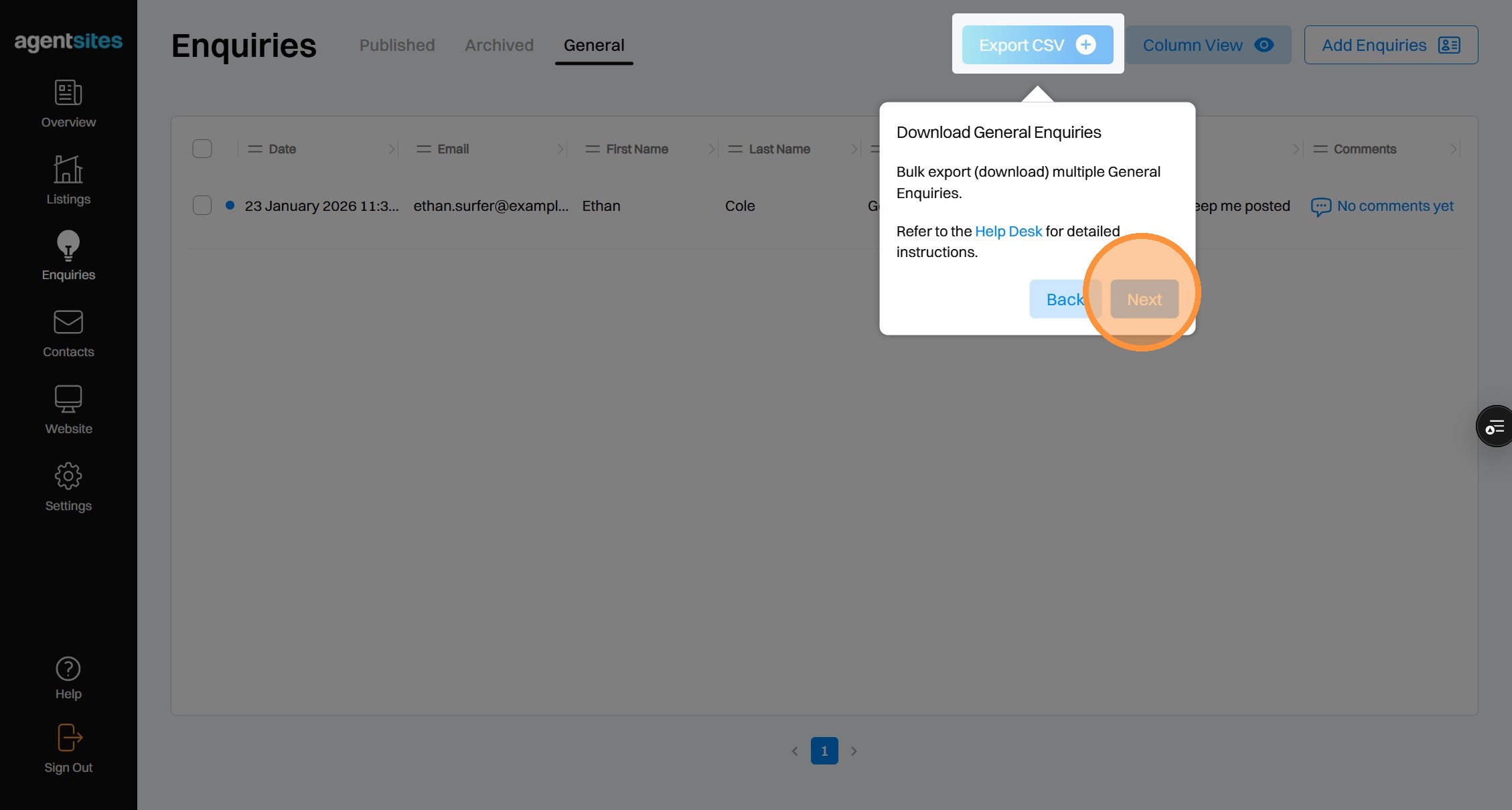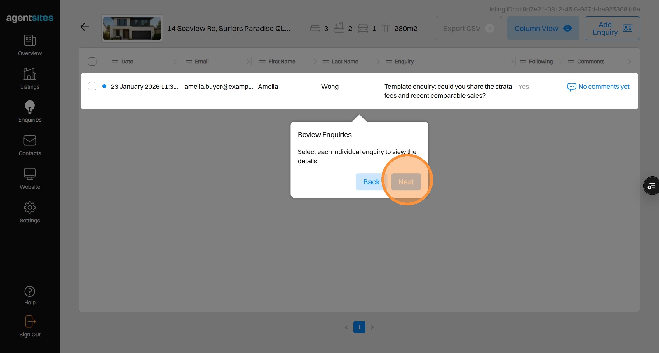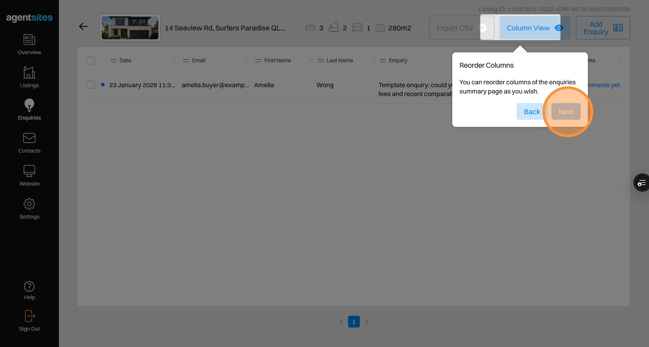 Walkthrough tour of the 'Enquiries' dashboard.