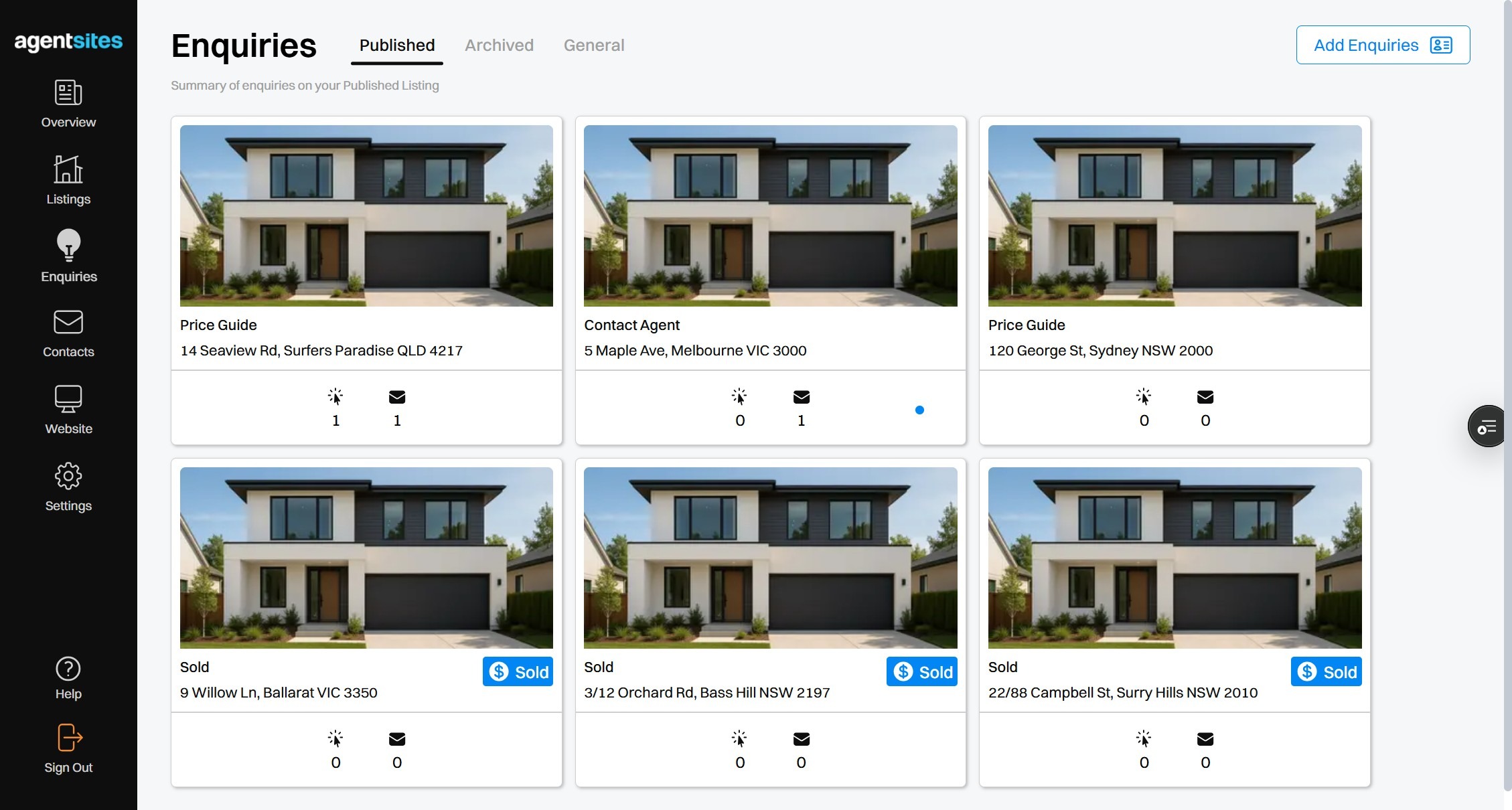 18. You can now freely navigate around the Enquiries dashboard!