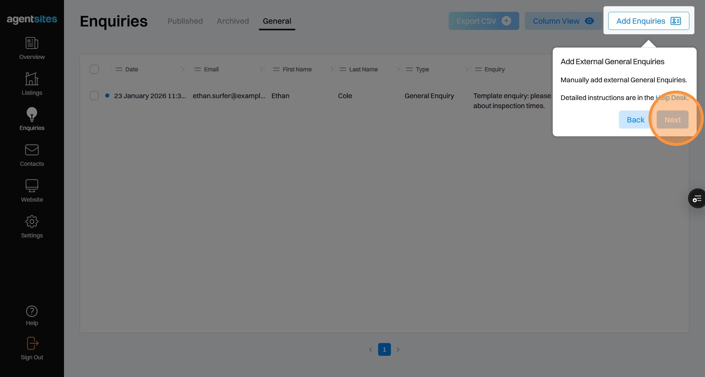 'Enquiries' Walkthrough