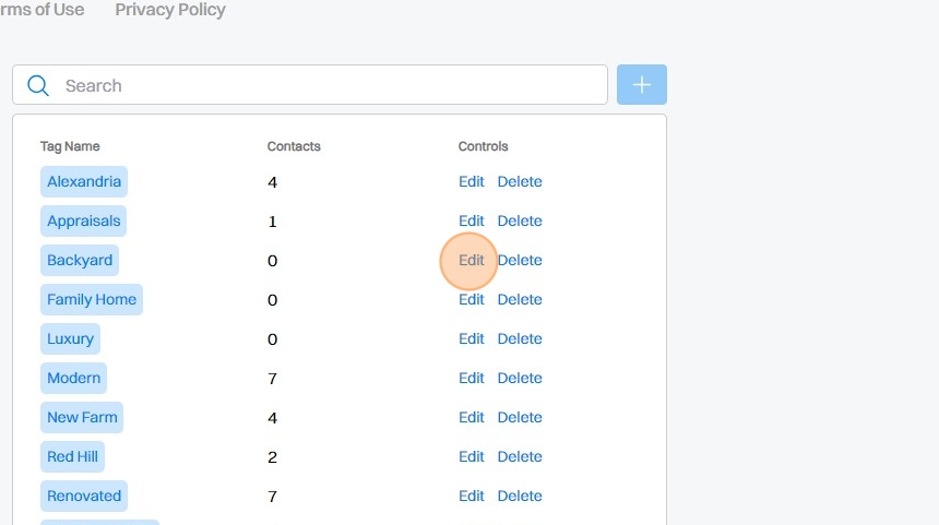 2. Here you can view and Search for specific Tags, as well as Create new Tags or Edit / Delete existing Tags.