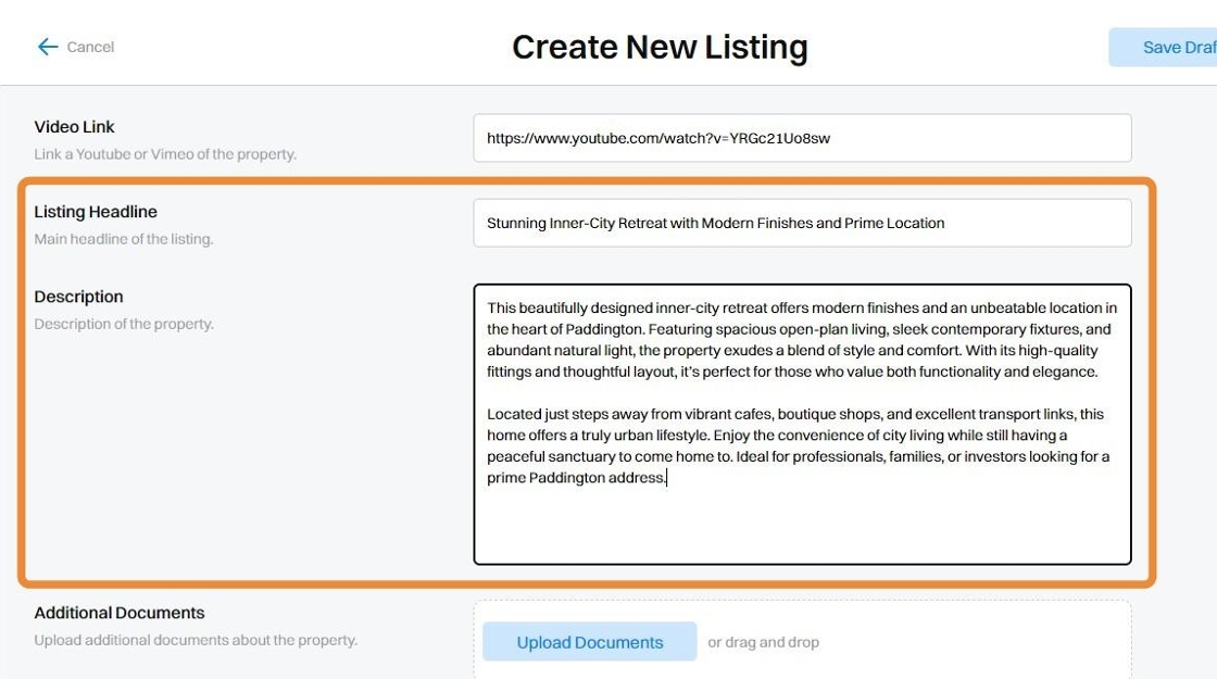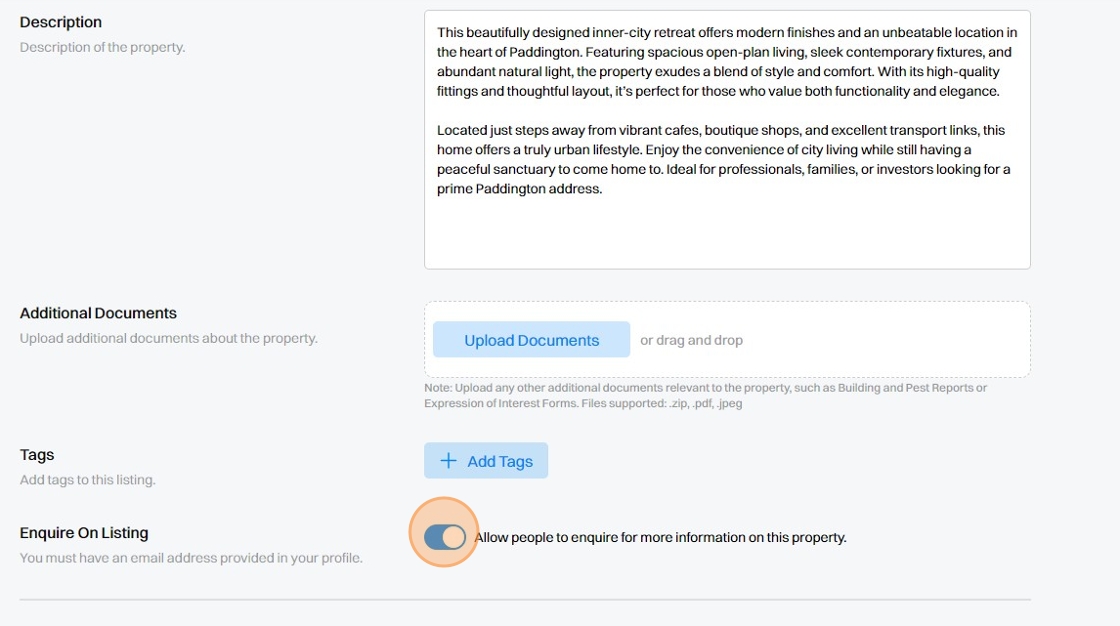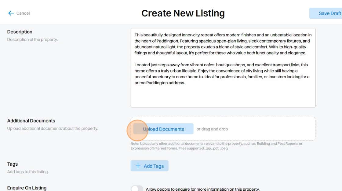 11. Add any Additional Documents that may be relevant to your Listing. For example, 'Expression of Interest Forms' or 'Building and Pest Inspection Reports' etc.