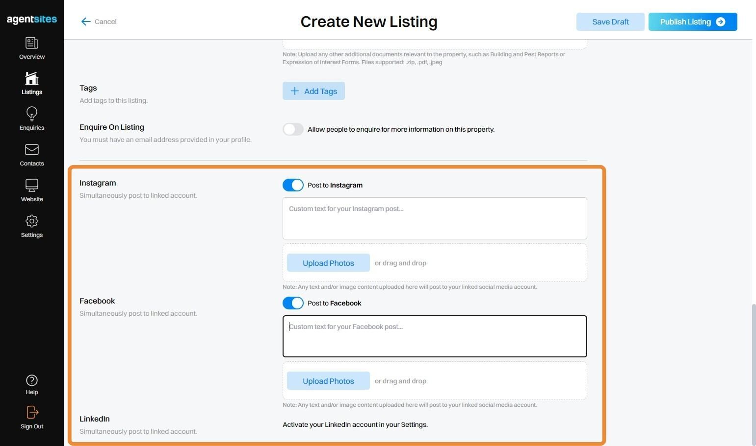 14. Select whether to post this listing to your linked Social Media Accounts when you choose to Publish the Listing.