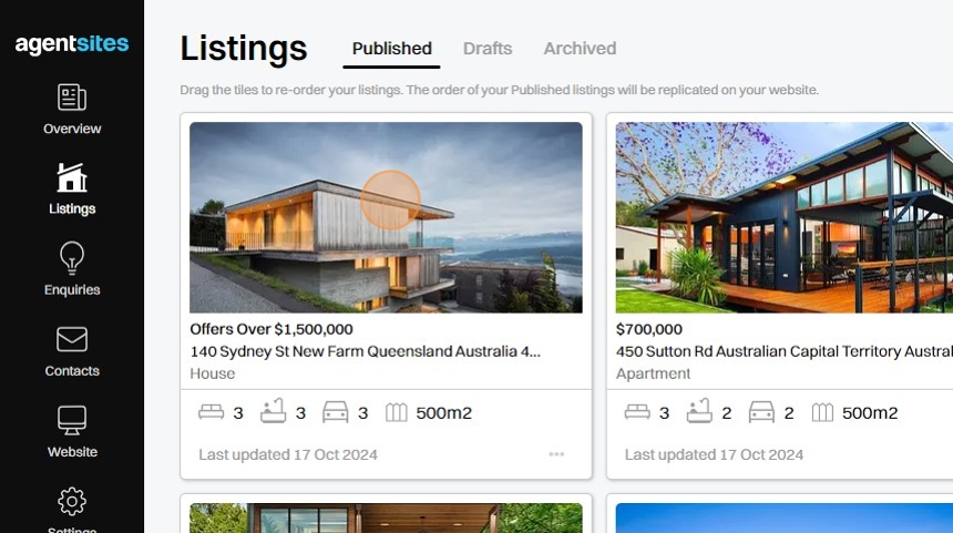 If you select Publish Listing, the listing will move from your Drafts folder and will be published onto your live Website.
