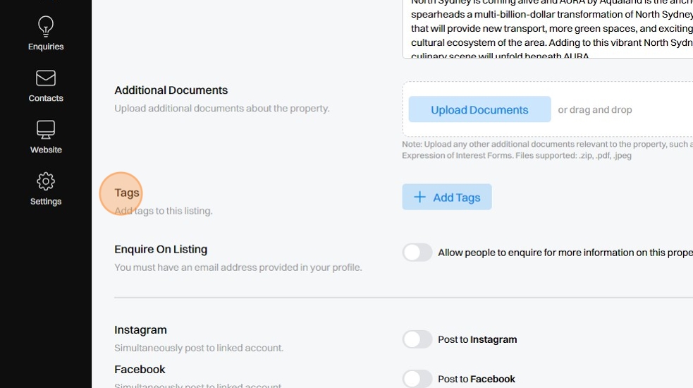 Tags added to a Listing will be automatically assigned to any Contacts who submit enquiries on the Listing.